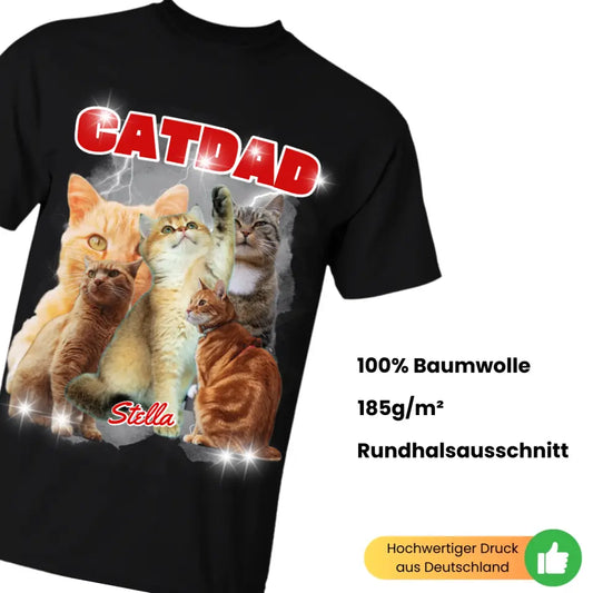 Personalisierbar90er Bootleg - Vintage Catdad T-Shirt - Personalisiert