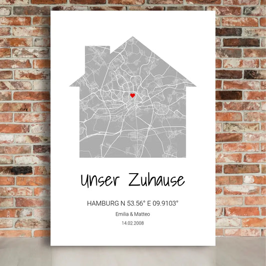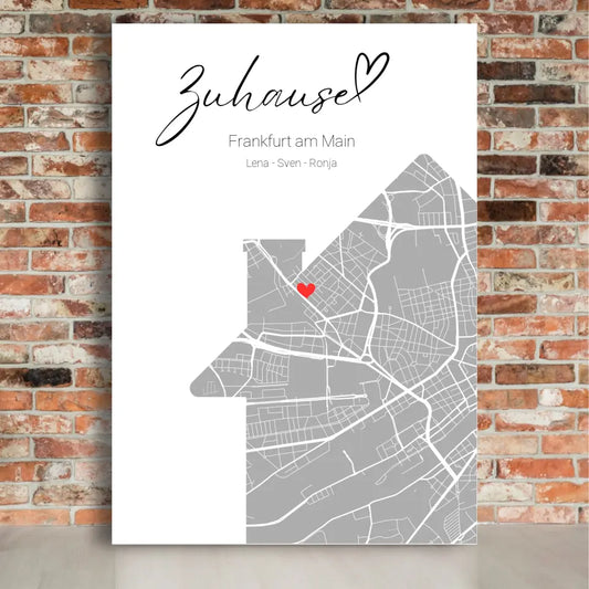 PersonalisierbarZuhause mit Herz - Personalisierbare Leinwand mit Map