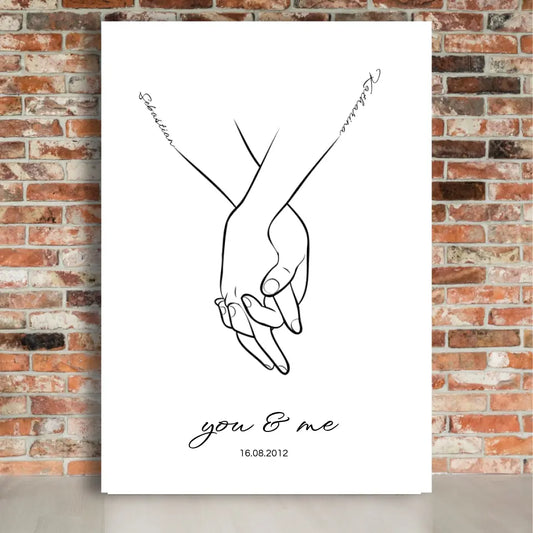 PersonalisierbarHand in Hand mit Namen - Personalisierte Leinwand
