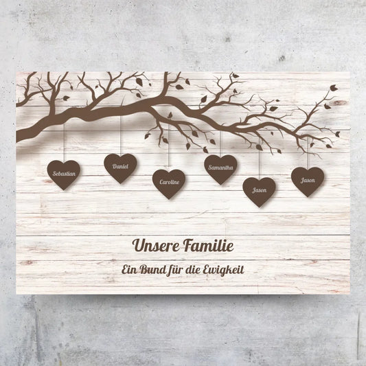 PersonalisierbarStammbaum für Familie - Personalisierte Leinwand bis 6 Namen 30x20cm