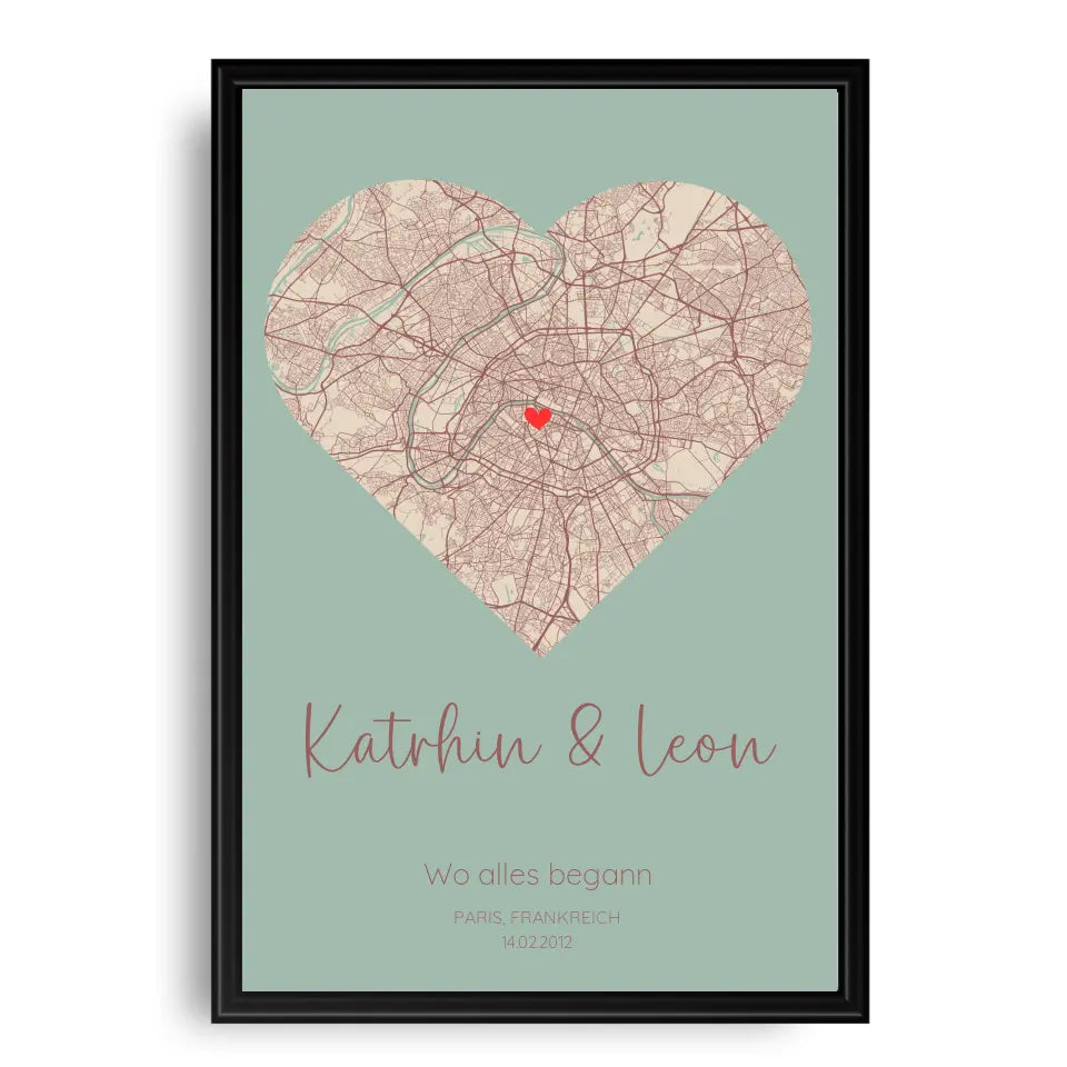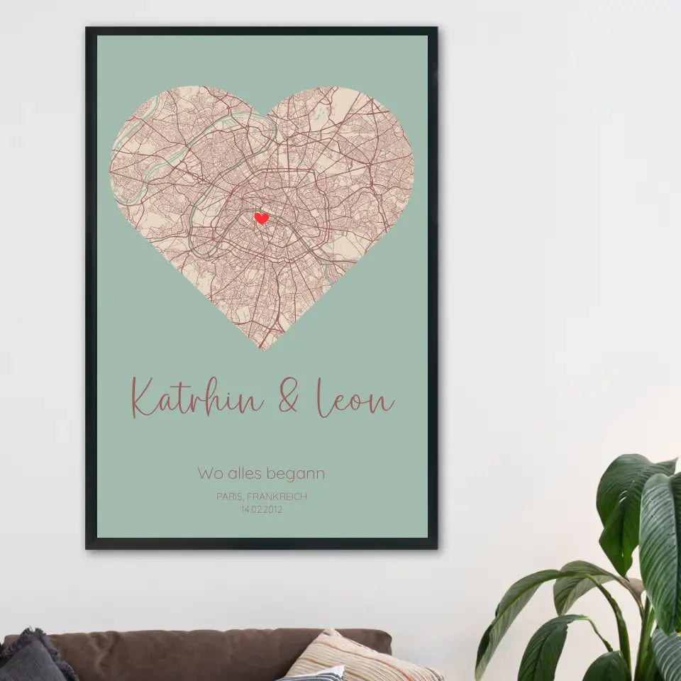 Personalisierbares Poster - "Wo alles begann" - 2 Herzen copy