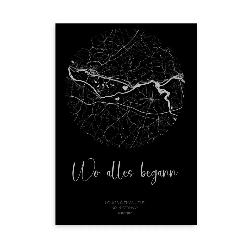 Wo alles begann Schwarz Grau - Personalisiertes Poster